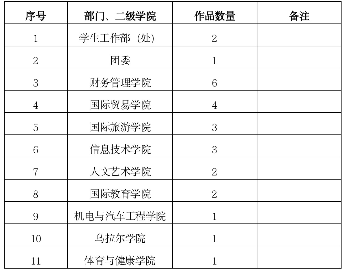 2022年8月12日前,各二级学院将2020年9月1日至报送前制作完成的作品,按《通知》要求报送学生工作部(处)。