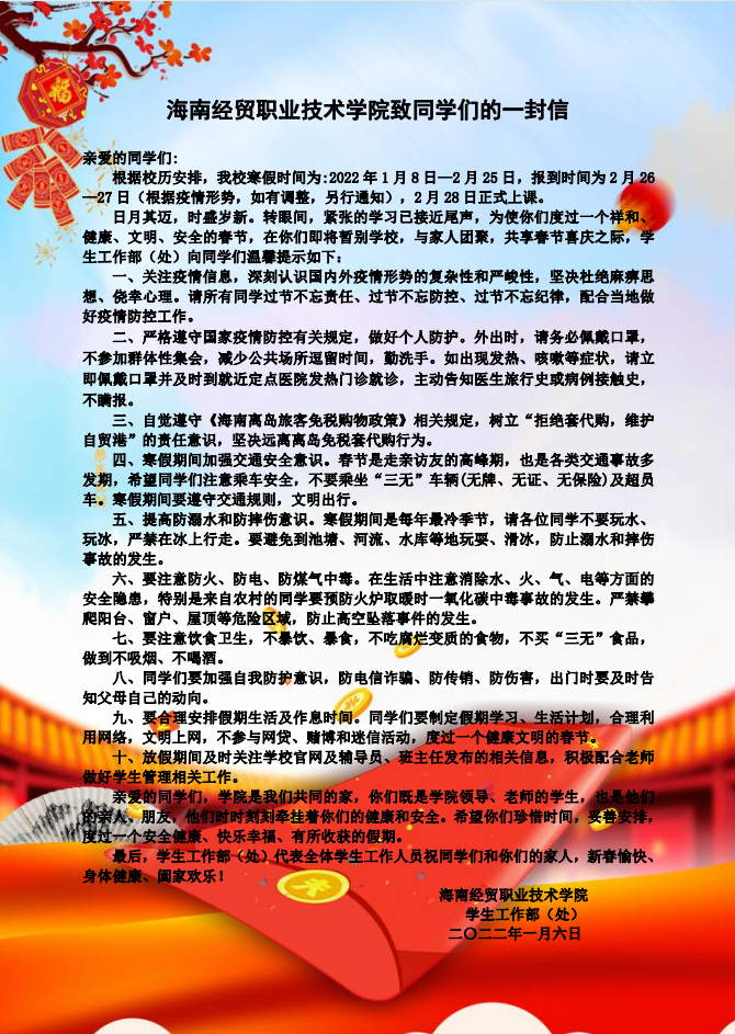 2138CC太阳集团致同学们的一封信