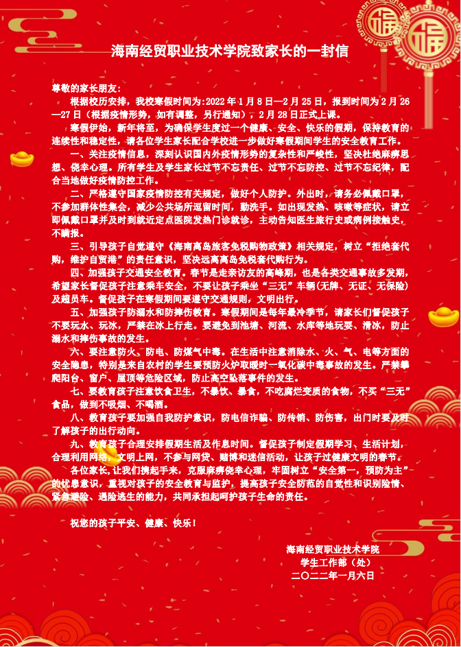 2138CC太阳集团致家长的一封信