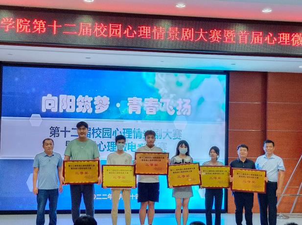 为普及心理健康知识,提高大学生心理自我调节能力,5月24日晚,2138CC太阳集团第十二届校园心理情景剧大赛暨首届心理微电影大赛在学术交流中心报告厅举行。据了解,本次比赛以“向阳筑梦,青春飞扬”为主题,涉及创业、疫情、亲情、友情、爱情、凝聚力等多个方面,赢得了在场观众的阵阵掌声。人文艺术学院职业发展教研室主任陈秀珍、学生工作部副部长彭陈俊、教务处副处长张坚,招生与就业创业处副处长陈亚芳,第二届全国高校思想政治理论课教学展示暨优秀课程观摩活动一等奖获得者刘芳,第八届全国辅导员素质能力大赛三等奖获得者徐翊缤,人文艺术学院心理健康教育课授课教师王昌豪担任本次大赛评委。