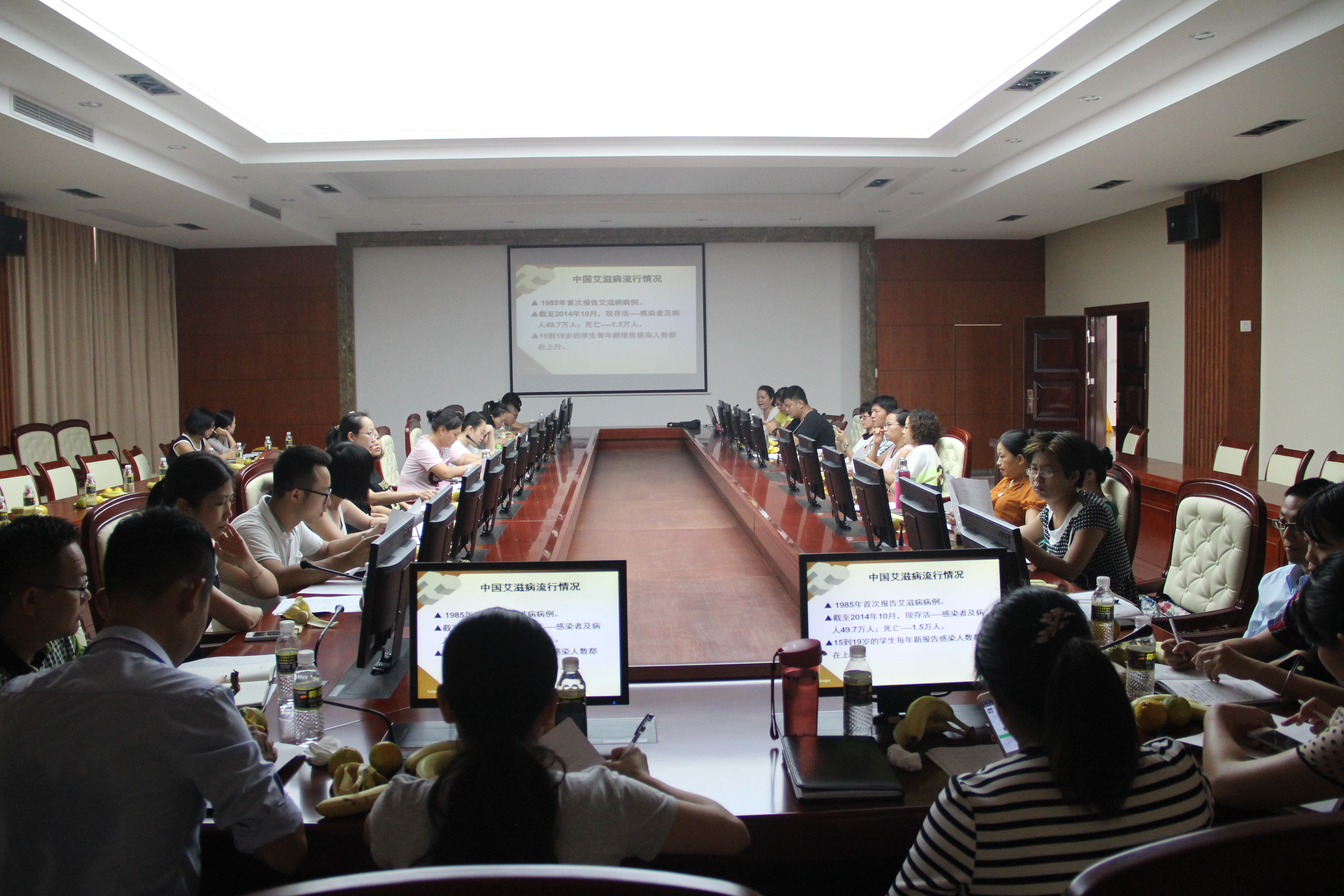 2015年9月8日下午3:00,我校学生工作处在第一会议室组织召开了预防艾滋病宣讲员暨大学生心理障碍的预防和调适专题培训活动,全体辅导员参加了培训。学生工作处副处长黄邦姬及心理咨询中心陈秀珍老师分别就高校艾滋病的预防及大学生心理障碍的预防和调适等问题做了专题讲座。