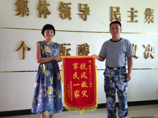 2014年7月28日,学院党委副书记、纪委书记徐畅,学生工作处副处长黄邦姬前往南航部队,代表学院向南航部队官兵送去了节日慰问及锦旗,答谢南航部队官兵在我院深受“威马逊”台风重创后,及时、主动伸出援助之手,帮助我院顺利开展灾后重建工作。