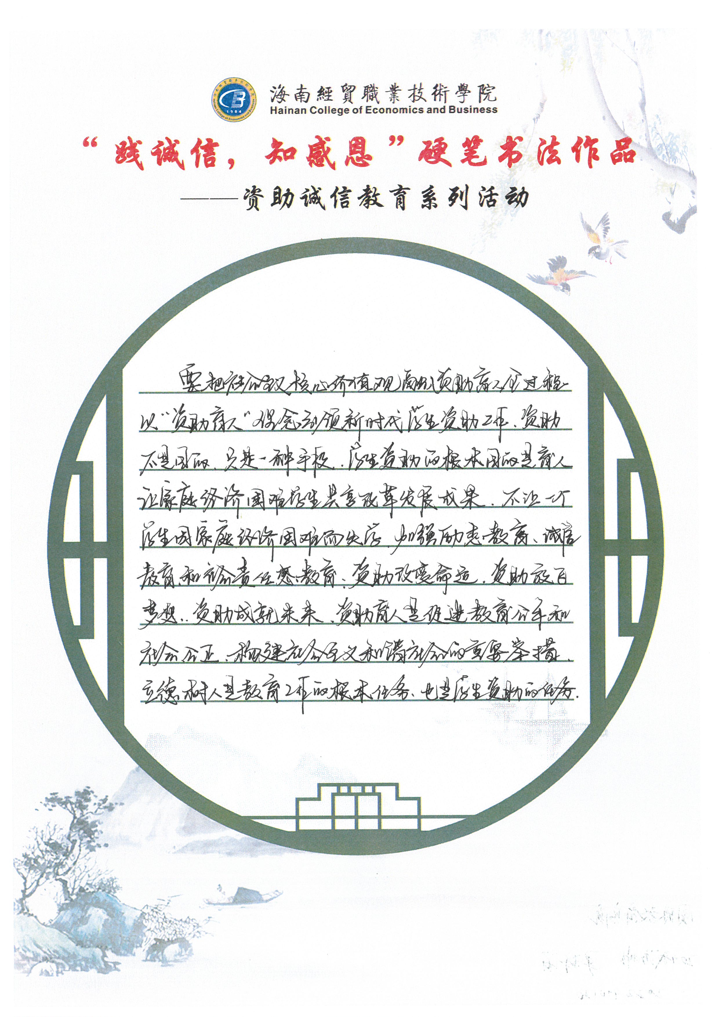 “践诚信,知感恩”——我校开展资助诚信教育主题硬笔书法活动