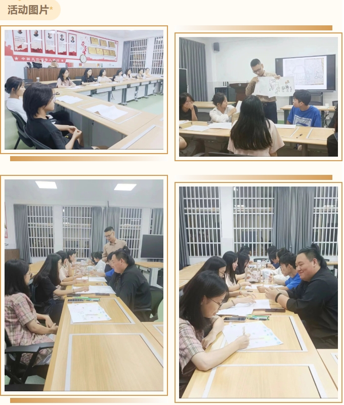 房树人团体心理绘画是通过绘画分析,洞悉绘画者的个性特征和心理状况。活动开始,团队带领者杨老师开展了热场活动,小组成员通过个性游戏的方式进行自我介绍。随后,杨老师介绍了本次团体活动的规则和要求,介绍了活动的意义。为方便在活动后进一步进行绘画分析,小组成员首先进行了EPQ气质类型测试。活动成员被分为4人一组,共计4个小组。小组成员全身心投入到活动当中,绘画完成后小组成员之间进行相互交换。杨老师给大家讲授了绘画的各个元素的意义,并开展了小组之间的交流和互动、分析。