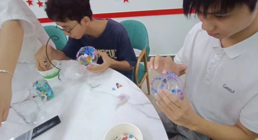 经过一番努力,一盏盏流光溢彩的马赛克灯逐渐在大家手中诞生。学生们依次介绍了自己的设计构思,看着自己亲手制作的成品,大家都欣喜万分。每一盏灯,都装着一个生活梦想;每一道光,都将照亮生活的美好。