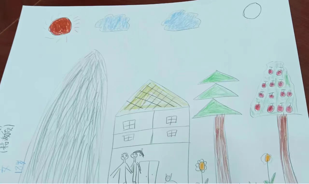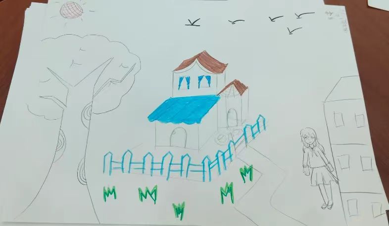 活动开始,团队带领者杨老师介绍了房树人测验。随后,杨老师介绍了本次团体活动的规则和要求,介绍了活动的意义。为方便在活动后进一步进行绘画分析,小组成员首先进行了EPQ气质类型测试。随后,小组成员全身心投入到活动当中。绘画结束后,杨老师倾听学生对自己的画的理解,并讲授了绘画的各个元素的意义,并开展了小组之间的交流和互动、分析。
