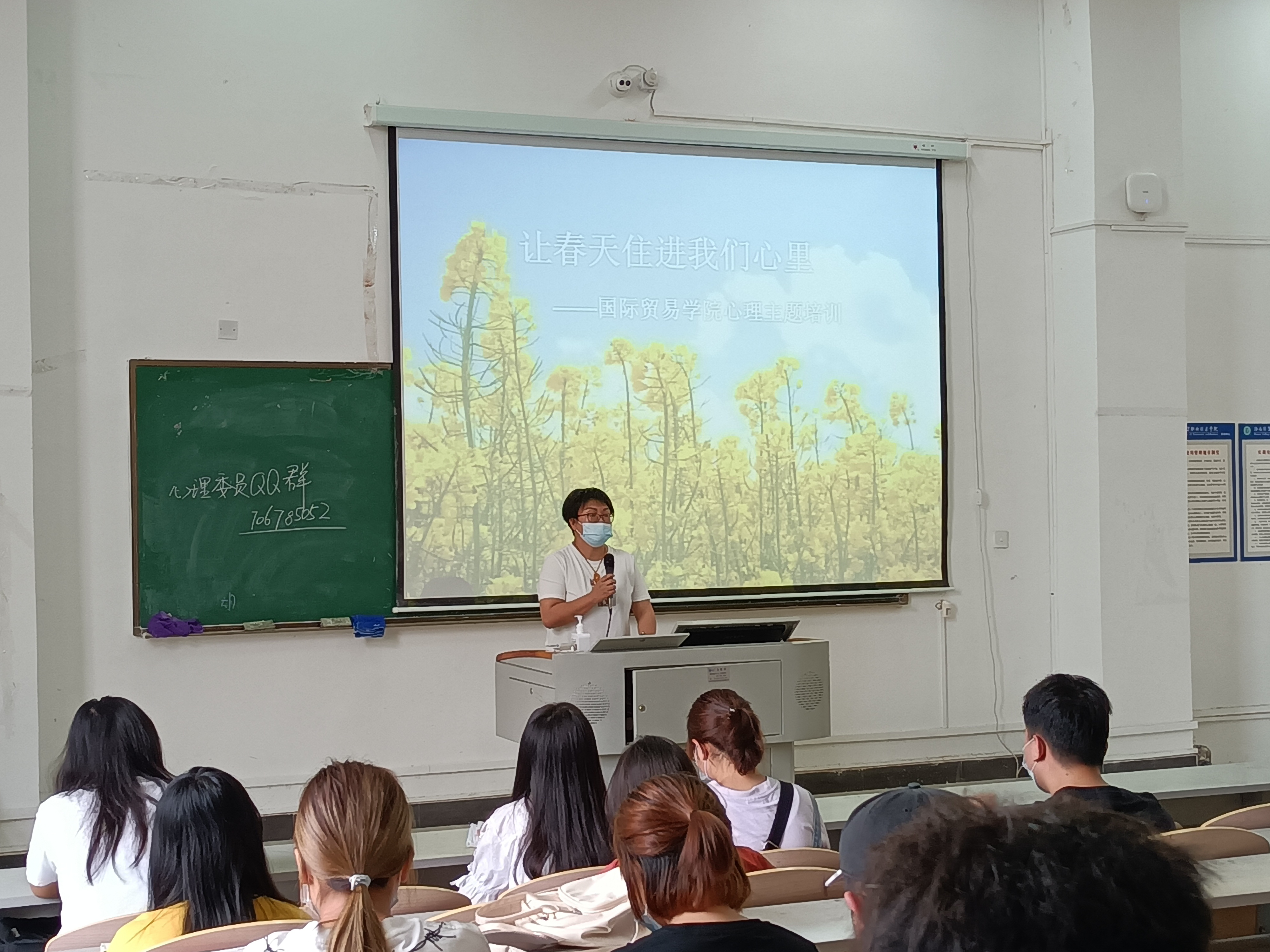 为进一步加强国际贸易学院大学生心理健康教育,促进学院学生心理委员队伍建设, 3月18日,国际贸易学院组织全体心理委员开展《让春天住进我们心里》专题讲座,由辅导员印华老师主讲。