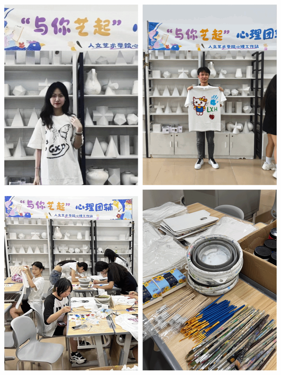 为进一步丰富校园文化生活,引导青年学生关爱自我、了解自我,关注心灵成长,增强心理健康自我调适能力,在人文艺术学院党总支的指导下,人文艺术学院心理工作站于2024年5月10日在6-306举行了“与你‘艺’起,盛夏绘‘心’衣”525心理健康月T恤彩绘活动。