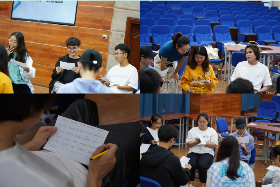 活动开始,各个成员围坐一圈,符老师通过“大风吹”、“我与你志趣相投”两个活动让同学们放松身心、彼此熟悉,使同学们能以更积极的状态投入到活动中。接着,通过“心情晴雨表”帮助同学们梳理最近一周的心情,进而引导同学们学会觉察自己的情绪,并学会去发掘之所以产生负面情绪那没被满足的背后需求是什么。