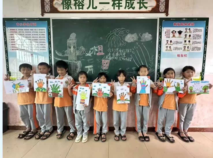 活动最后,小朋友们纷纷展示自己的“作品”并合影纪念。一场小小的绘画活动,传递的是爱和关怀,是全社会共同关注儿童健康快乐成长的缩影,不仅锻炼了孩子们的动手能力,还让孩子们体验了美术创意活动的快乐。