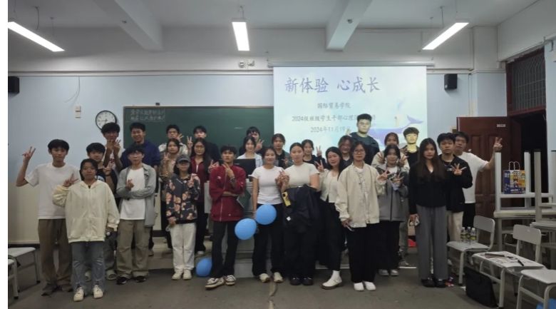 为进一步强化班级团体的凝聚力与向心力,营造积极向上的学风班风,国际贸易学院于2024年11月25日在1-406教室开展了以“新体验,心成长”为主题的团体心理辅导活动。国际贸易学院全体2024级新生班级班干部参加本次活动。