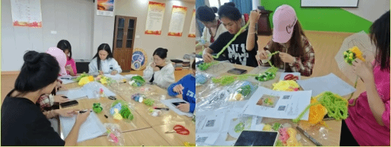 随后,周秀青同学向大家介绍了杯垫的制作方法并带领大家按照自己对苔藓的生存之道的理解,去制作一片属于自己的小舞“苔”杯垫。