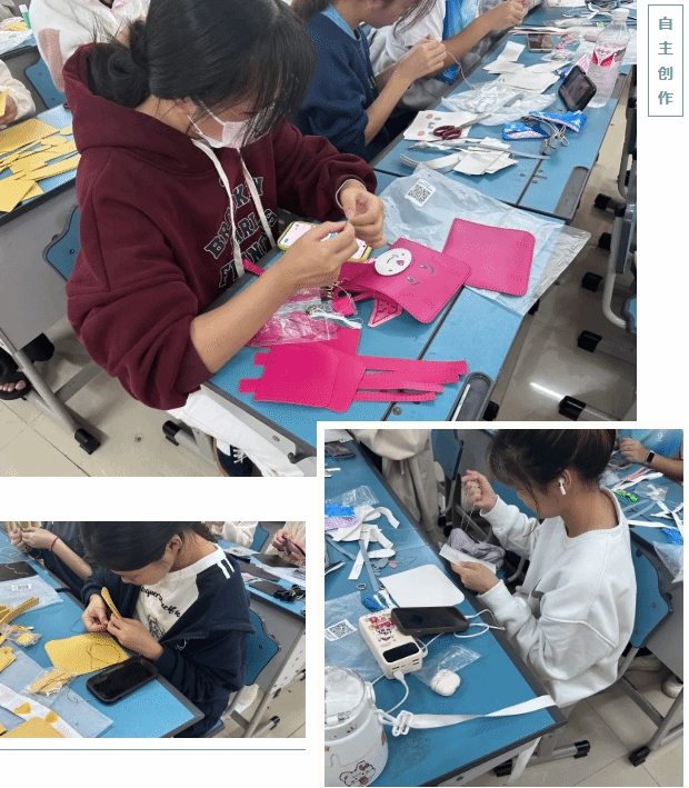 活动现场,手工老师耐心细致地讲解手工包的制作流程,强调制作过程中需要注意的一些事项,同学们开始选用自己心仪的单肩包款式,拿起针线,全神贯注地投入到创作中。大家不仅交流着缝制心得,还共同克服制作过程中的难关,现场洋溢着温馨而和谐的氛围。