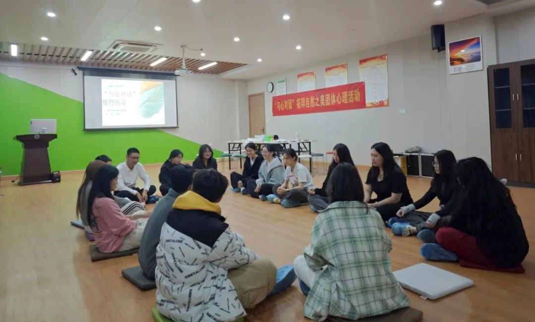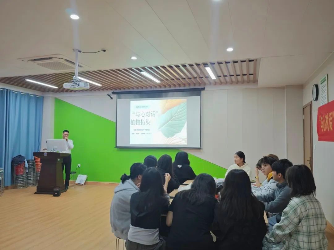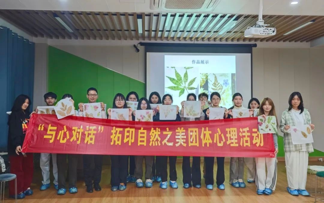 2025年3月18日,由心理健康教育与咨询中心主办的“与心对话”拓染成长团体活动在6教108幸福团体辅导室举办。本次活动以“自然与心灵的交融”为主题,通过拓染艺术创作,大家将植物叶片、花瓣的自然纹理印染在布料上,让同学们体验了艺术疗愈的魅力。