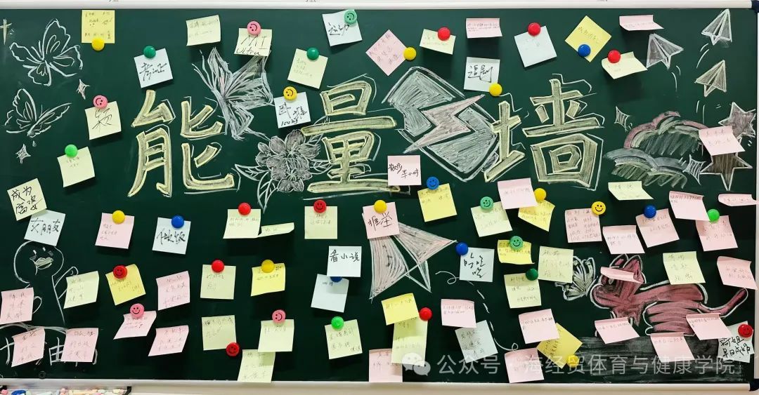 学生在轻柔的音乐中体验“正念呼吸”,学习通过专注呼吸舒缓情绪。之后,发放便利贴,学生写下“本周将尝试的一个减压行动”,贴于学院“能量墙”展示。许多学生在“能量墙”贴上本周行动计划:“每天散步半小时”,“和室友约一场撸铁局”,“看小说”,“推举”等。