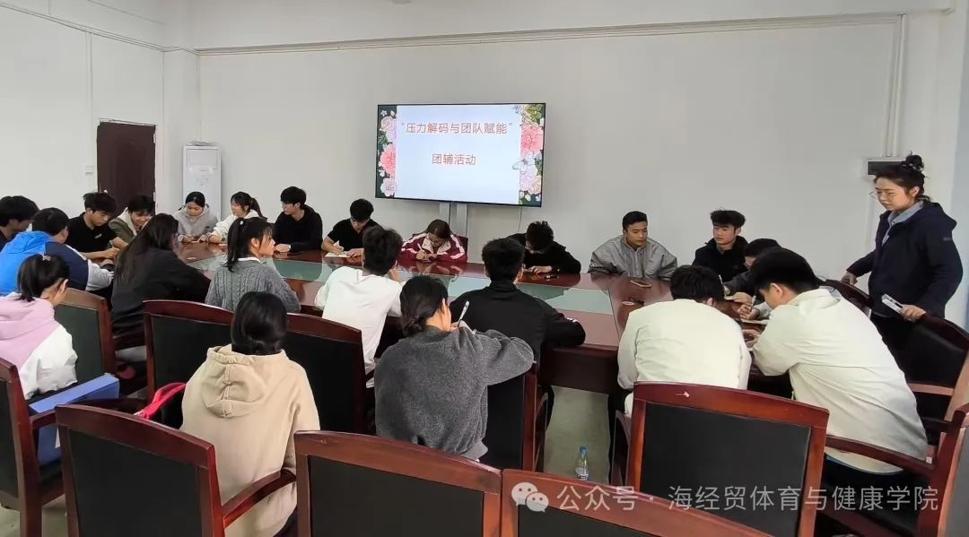 为帮助大学生科学应对压力、凝聚朋辈支持力量,体育与健康学院于3月19日下午在101会议室教室开展了“压力解码与团队赋能”主题心理团辅活动。活动由心理健康教师张晓阳主持,吸引了来自不同年级不同班级的30余名学生参与,通过趣味互动与深度体验,助力学生解锁压力管理技能,构建积极互助的班级心理支持网络。