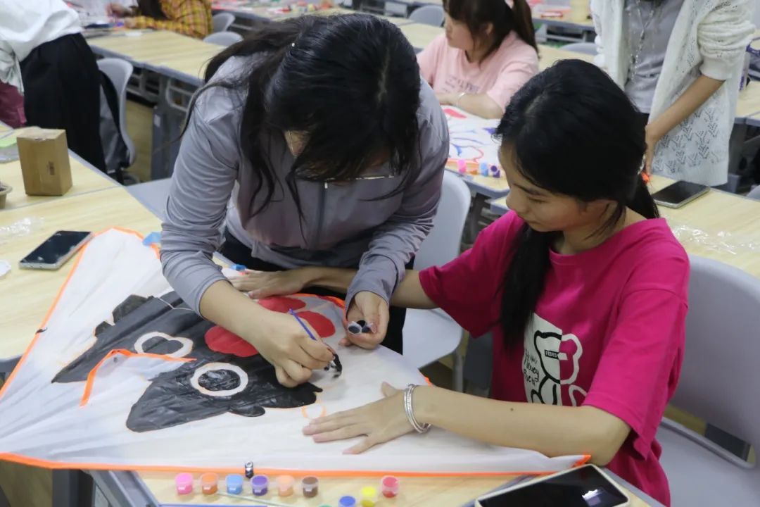 活动伊始,同学们兴致勃勃地发挥着自己的想象力和创造力。有的在风筝上写下了对未来发展的心愿和祝福,也有的把抽象的现实困境具象化地描绘出来,还有的将自己喜欢的卡通形象绘制在风筝上。一幅幅画卷,都是每个个体内心世界的小小缩影,同学们在风筝上画下缤纷印记,道出了各自心中的希望。大家一边绘画,一边敞开心扉交流,现场氛围欢乐、融洽。