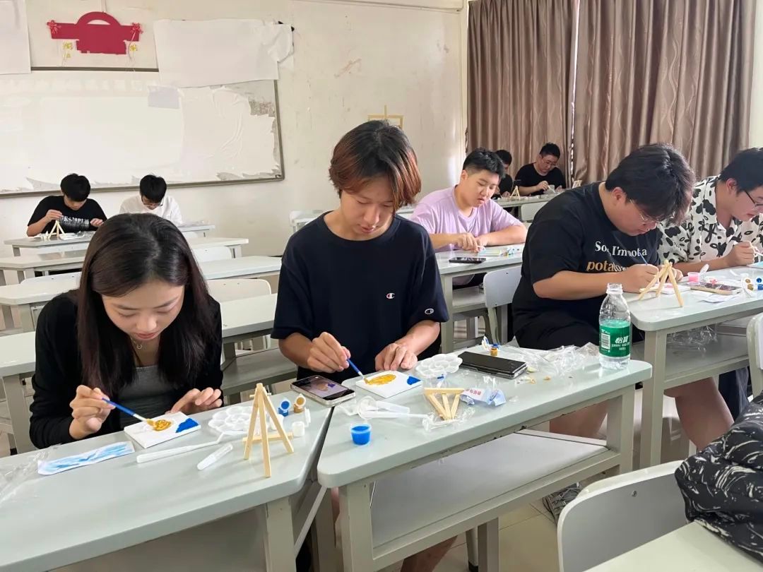 为帮助同学们放松身心、激发创造力,活动特别设置了DIY画板环节。同学们利用各式贝壳进行拼贴、上色,在画板上自由发挥想象力,创作出独具特色的作品。这一过程不仅让同学们体验到艺术创作的乐趣,也有效缓解了学习压力,增强了自我表达与情绪调节能力。