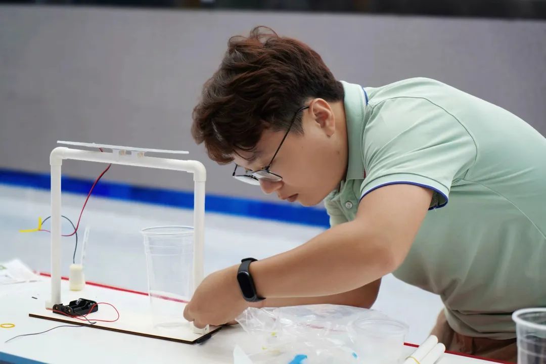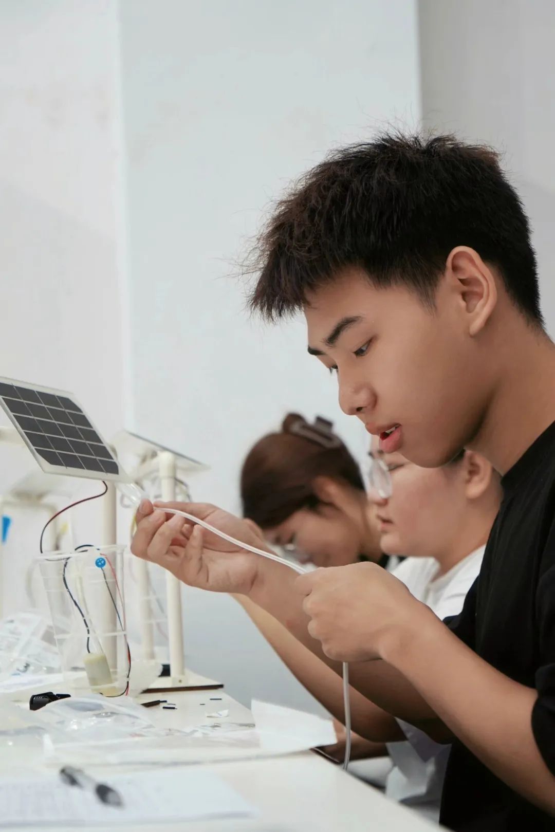 活动中,符传栋老师亲自上阵,以其娴熟的技巧率先完成了太阳能浇花模型的组装,为参与者树立了良好的榜样。活动巧妙融入了团体心理辅导元素,以手工制作为载体,让参与者在动手实践中探索心灵世界。大家热情参与,有的精心连接部件,有的细心固定管卡,彼此间交流协作,共同克服困难,如水管连接不稳、电路调试等,展现了非凡的探索精神与创新意识。