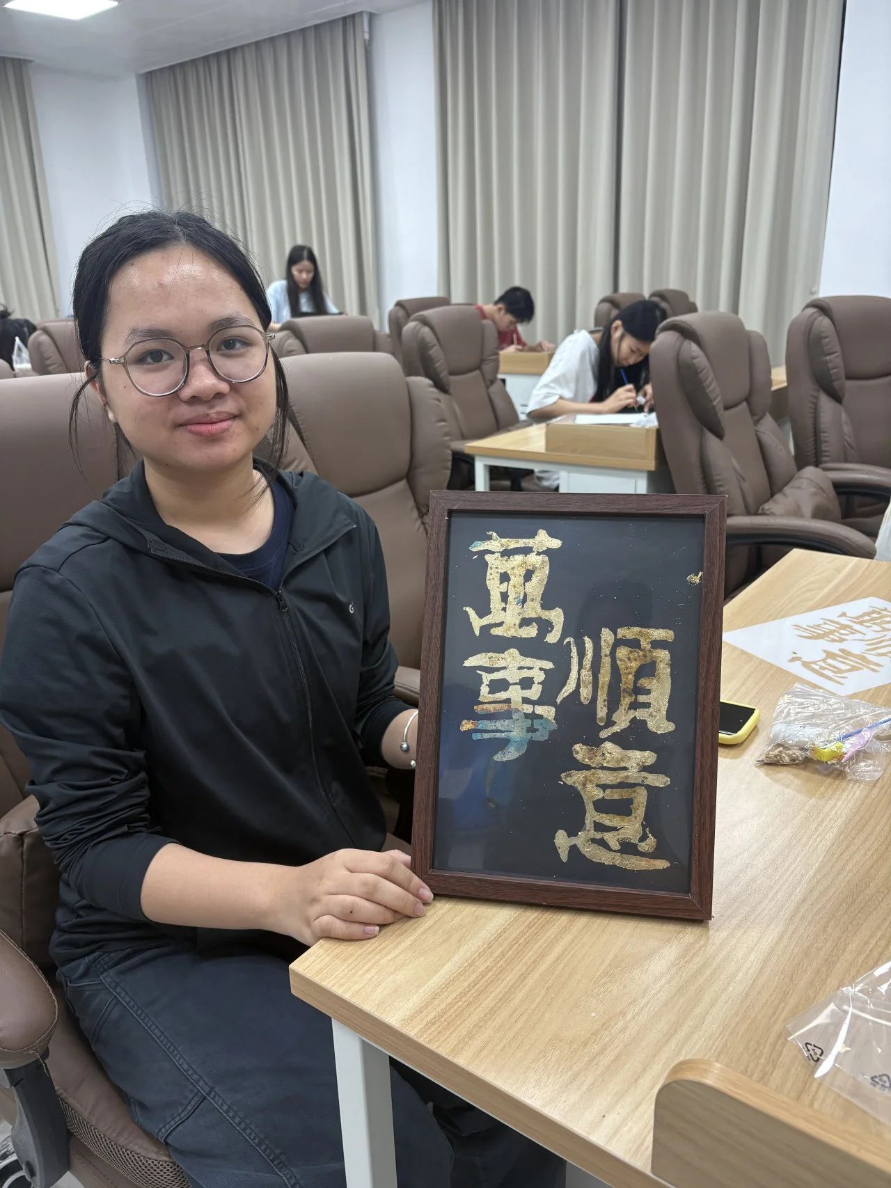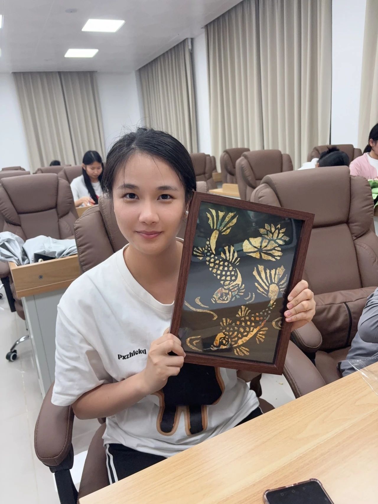 这场沉浸式创作不仅让同学们领略 “一寸箔片一寸金” 的非遗魅力,更成为心灵疗愈的温暖时光。专注创作时的沉静,协作完成作品时的默契,让传统文化不仅流于指尖,更浸润心田。未来,学院将持续开展此类活动,让非遗技艺在校园焕发新生,让文化自信与心灵成长同频共振。