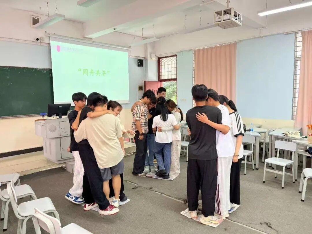 活动在轻松愉快的氛围中拉开帷幕。在符老师的引导下,一场名为“爱的抱抱”的破冰游戏迅速点燃了现场气氛。同学们随着音乐围圈奔跑,在口令声落下的瞬间,欢声笑语中彼此拥抱,瞬间拉近了心与心的距离,现场氛围温馨而热烈。