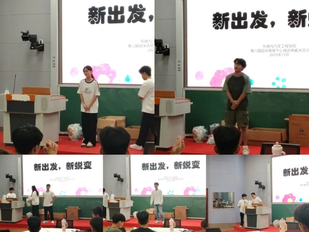11 月 11 日中午,机电与汽车工程学院在 1 教 104 开展 “新出发,新蜕变” 主题团体心理辅导活动,24 级团学青各部门干部与 25 级新成员齐聚一堂,共赴这场温暖的成长之约。