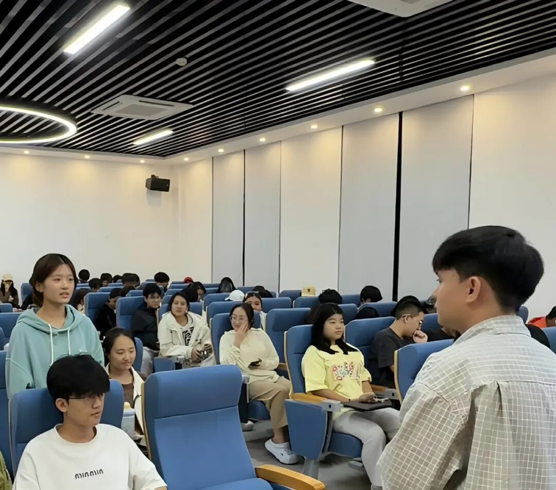观影结束后进行交流分享环节。分管学院大学生心理健康工作的王兆勇老师谈到:“小妖怪的成长历程恰似同学们的求学路,挫折与迷茫都是常态。学院始终是大家的后盾,希望大家学会接纳不完美,以勇气对抗压力。”2024级高同学分享:“小妖怪的坚持让我明白,备考的艰辛都是成长养分,今后会更乐观面对困境。”